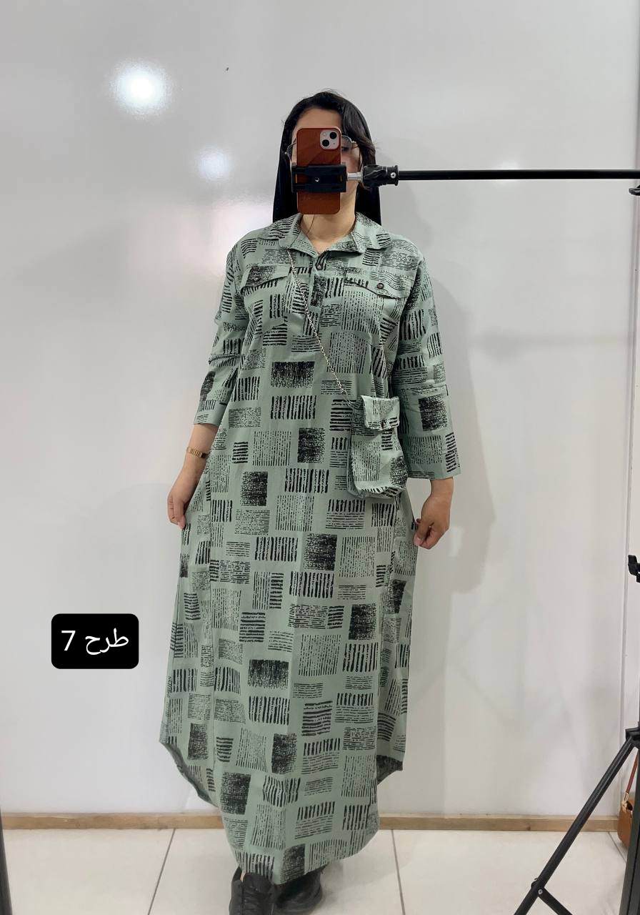 پیراهن ساحلی زنانه نخی آستین بلند کش دار