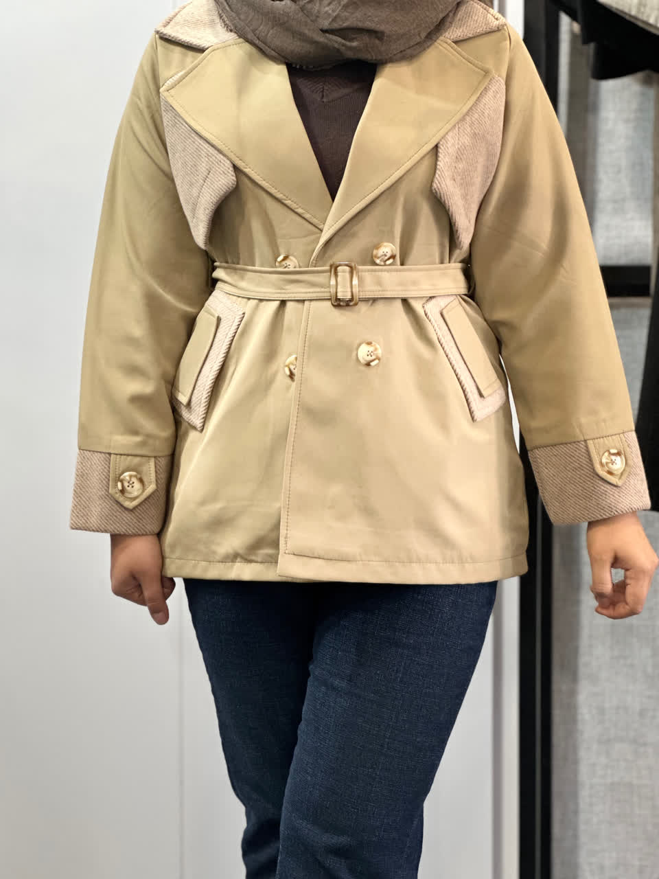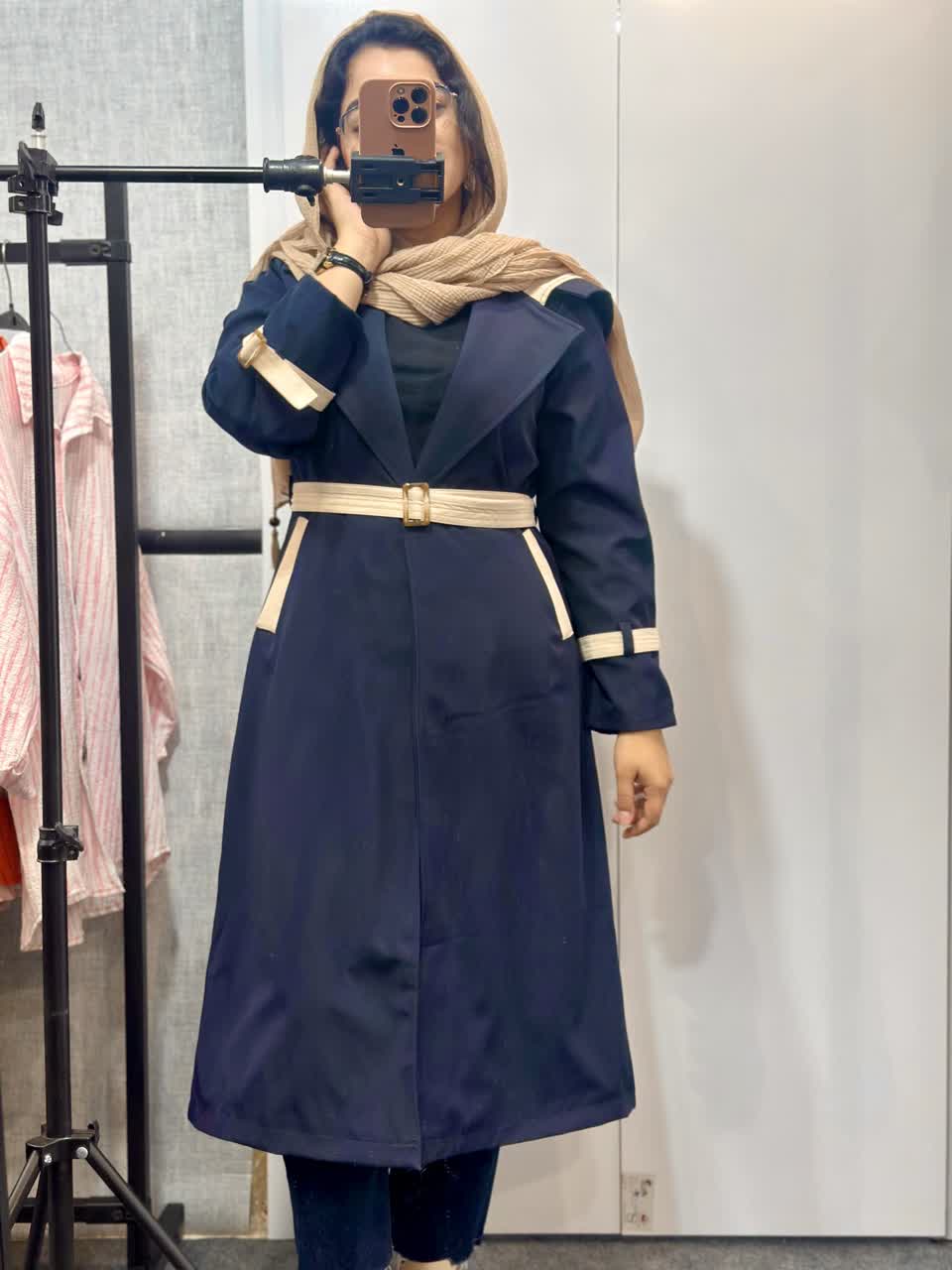 بارونی بلند زنانه کایلین دو رنگه با کمربند